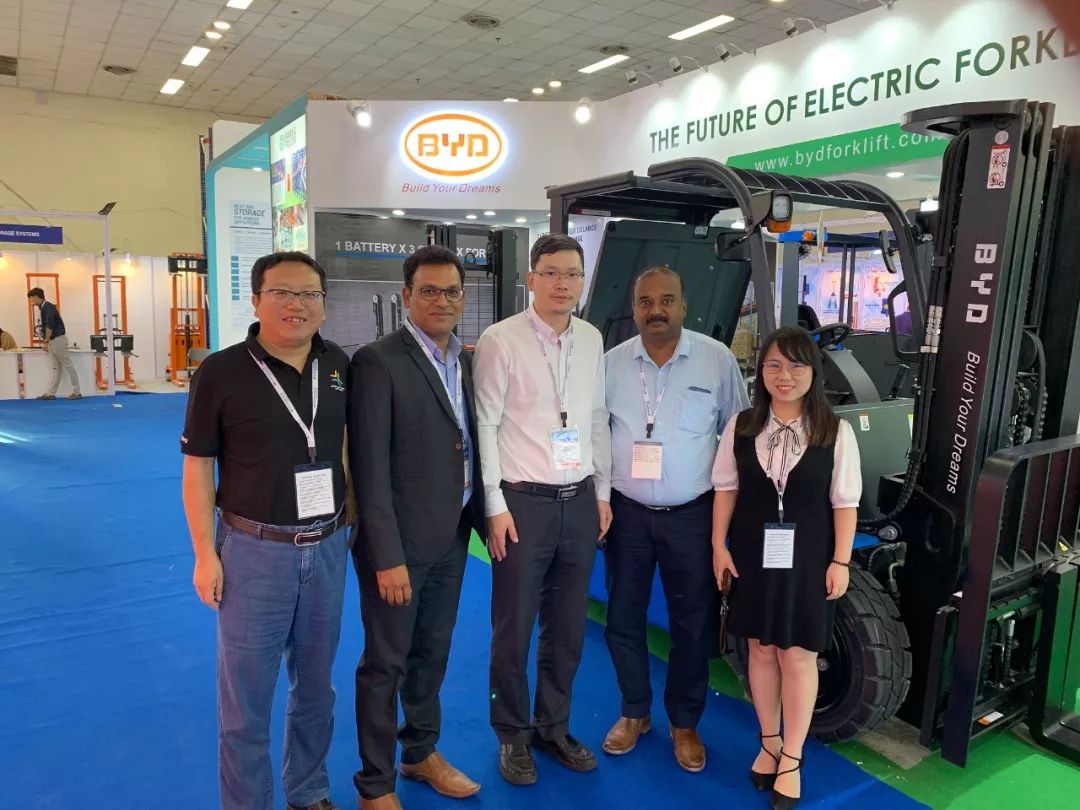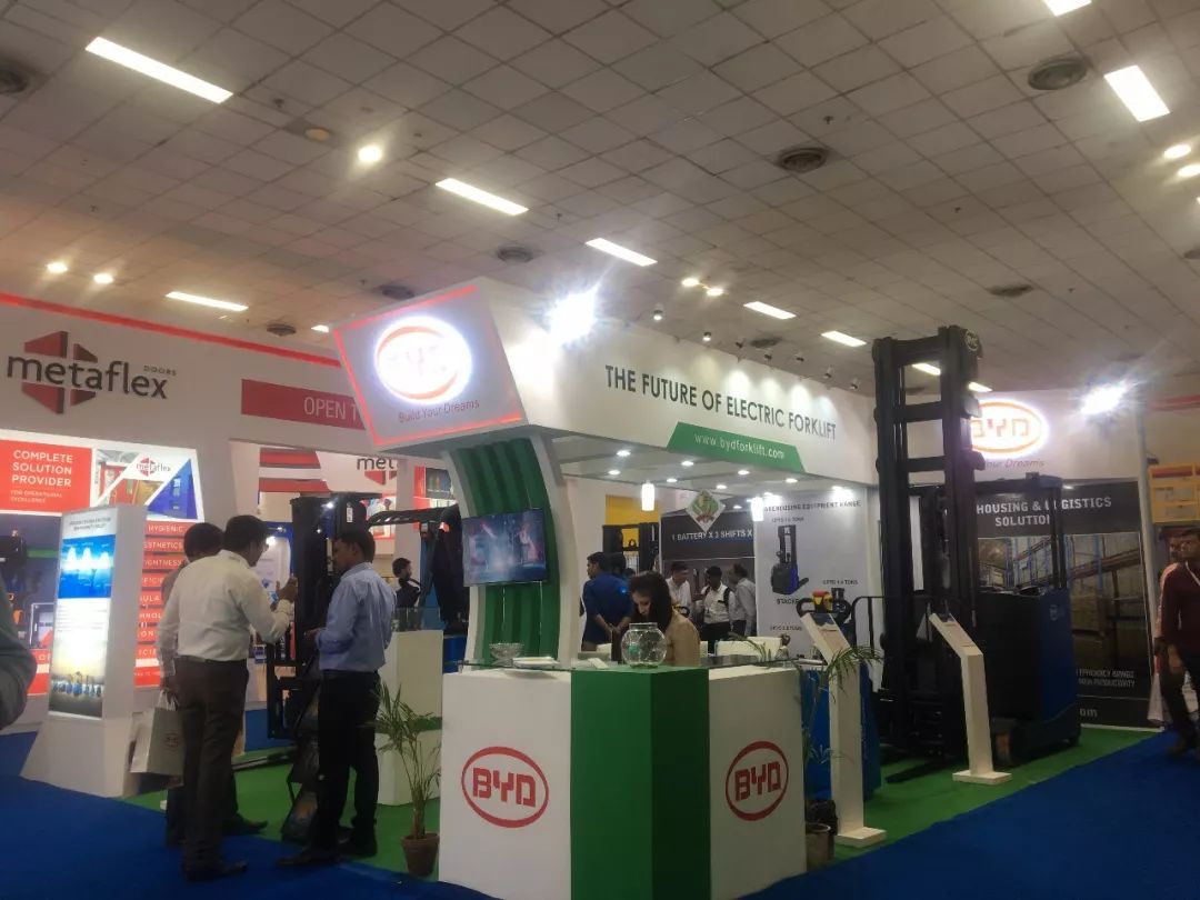6月20日,第九届印度仓储展览会在印度新德里国际展览中心盛大举行。全球14个国家的300家行业巨头前来参展,场面甚是辉宏。作为展会唯一一家自主研发电动叉车的企业,比亚迪携旗下3.0T平衡重式叉车、1.6T前移式叉车、1.4T堆高车、2.0T托盘搬运车等新能源叉车产品惊艳亮相,在印度叉车市场掀起了一股绿色环保新浪潮,成为了最受瞩目的明星。